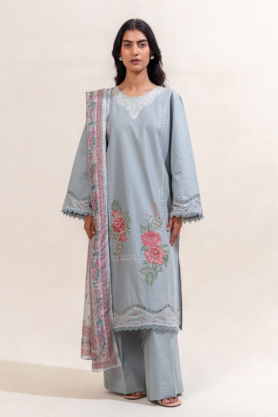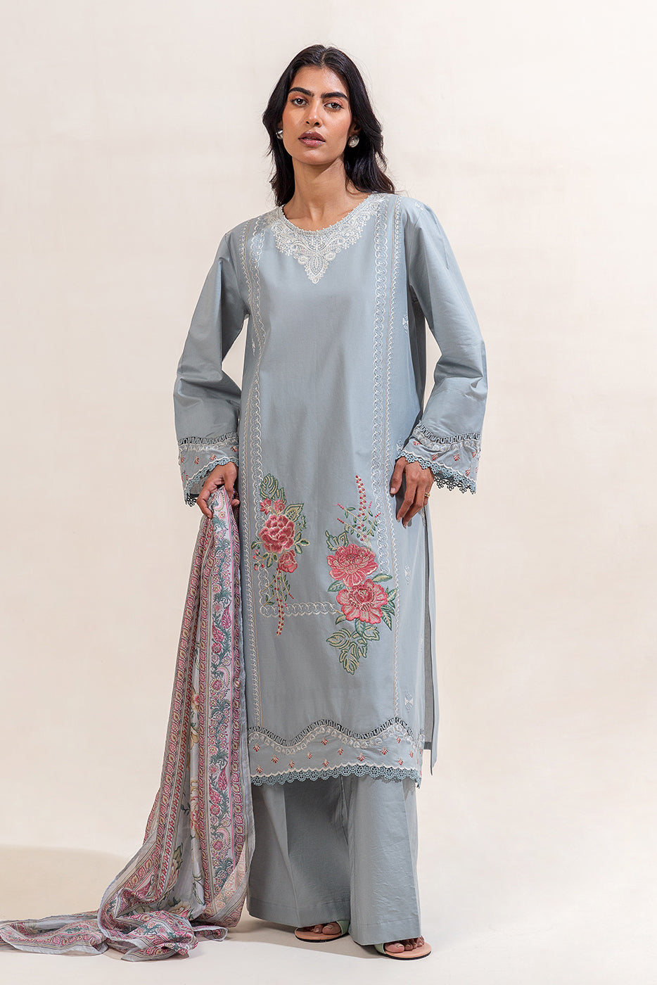1.2 Mtrs Embroidered Lawn Front, 0.76 Mtrs Embroidered Front Border, 0.76 Mtrs Embroidered Sleeves Border, 1.2 Mtrs...